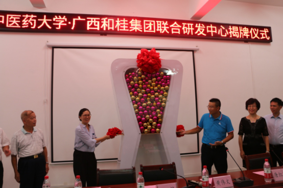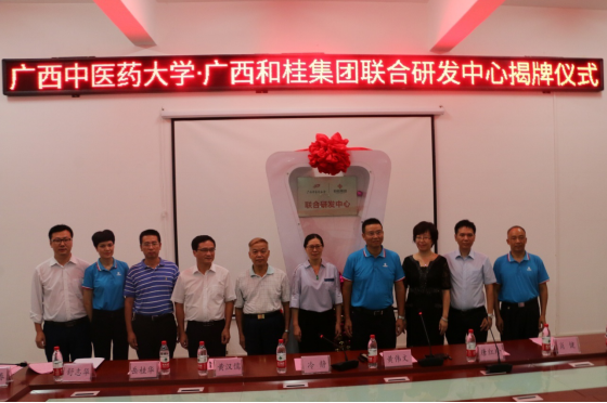 7 月 14 日,“beat365正版唯一入口必一-广西和桂集团联合研发中心”揭牌仪式在beat365正版唯一入口必一达道楼4楼药学院会议室隆重举行。