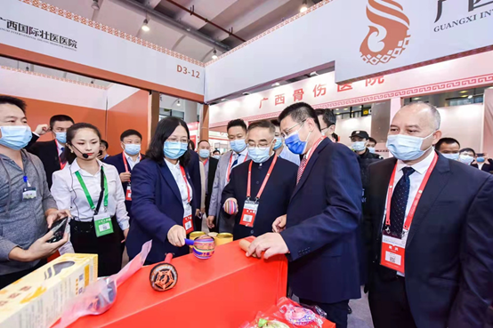 10 月16日-17日,在南宁国际会展中心举行的第九届中药材基地共建共享交流大会现场设置了全国道地药材展区、中药材产业配套服务展区、乡村振兴展区、14个设区市组成的广西中医药成果展区、瑶医药展馆、“桂十味”展馆等,全国200多家知名企业家、中医院校、医疗机构、科研院所等进行展览展示。beat365正版唯一入口必一及第一附属医院、附属瑞康医院、附属国际壮医医院分别设置了展厅。展览期间,原国家卫生计生委副主任、国家中医药管理局原局长、创新联盟名誉主席王国强,人民英雄国家荣誉获得者、中国工程院院士、国家中药材标准化与质量评估创新联盟理事长张伯礼,自治区副主席黄俊华等领导嘉宾莅临beat365正版唯一入口必一及附属单位展厅参观。beat365正版唯一入口必一校长姚春、副校长冷静等领导分别向巡展领导及嘉宾详细介绍了学校的科技成果情况,得到了巡展领导的充分肯定,也获得参展观众的好评、点赞。