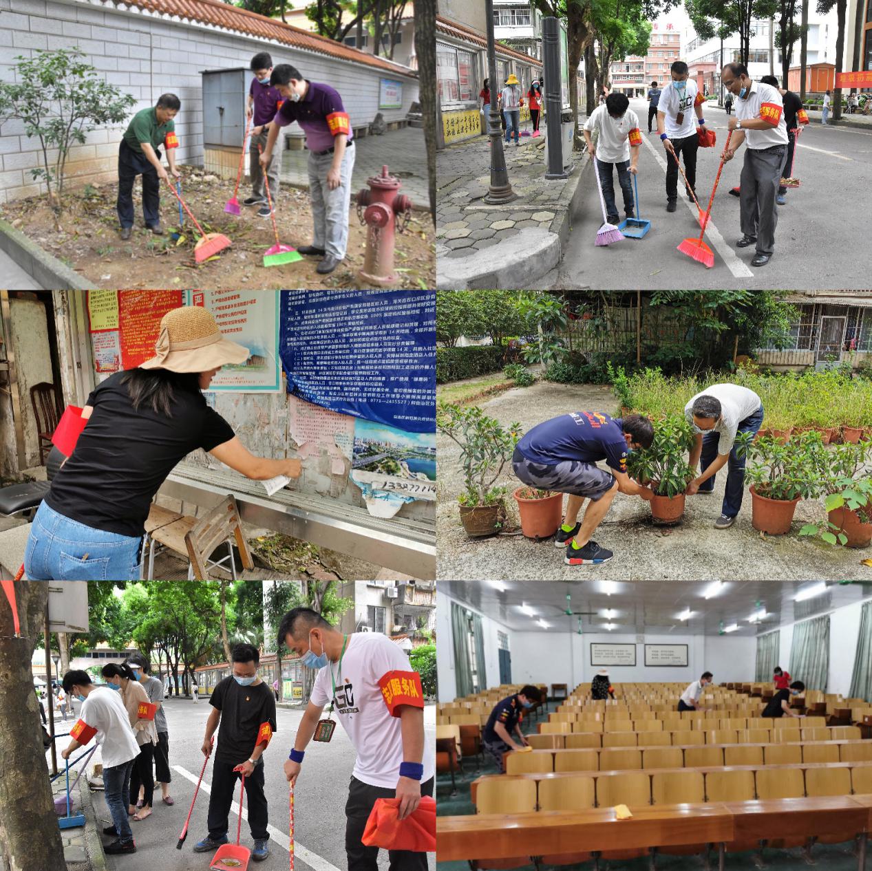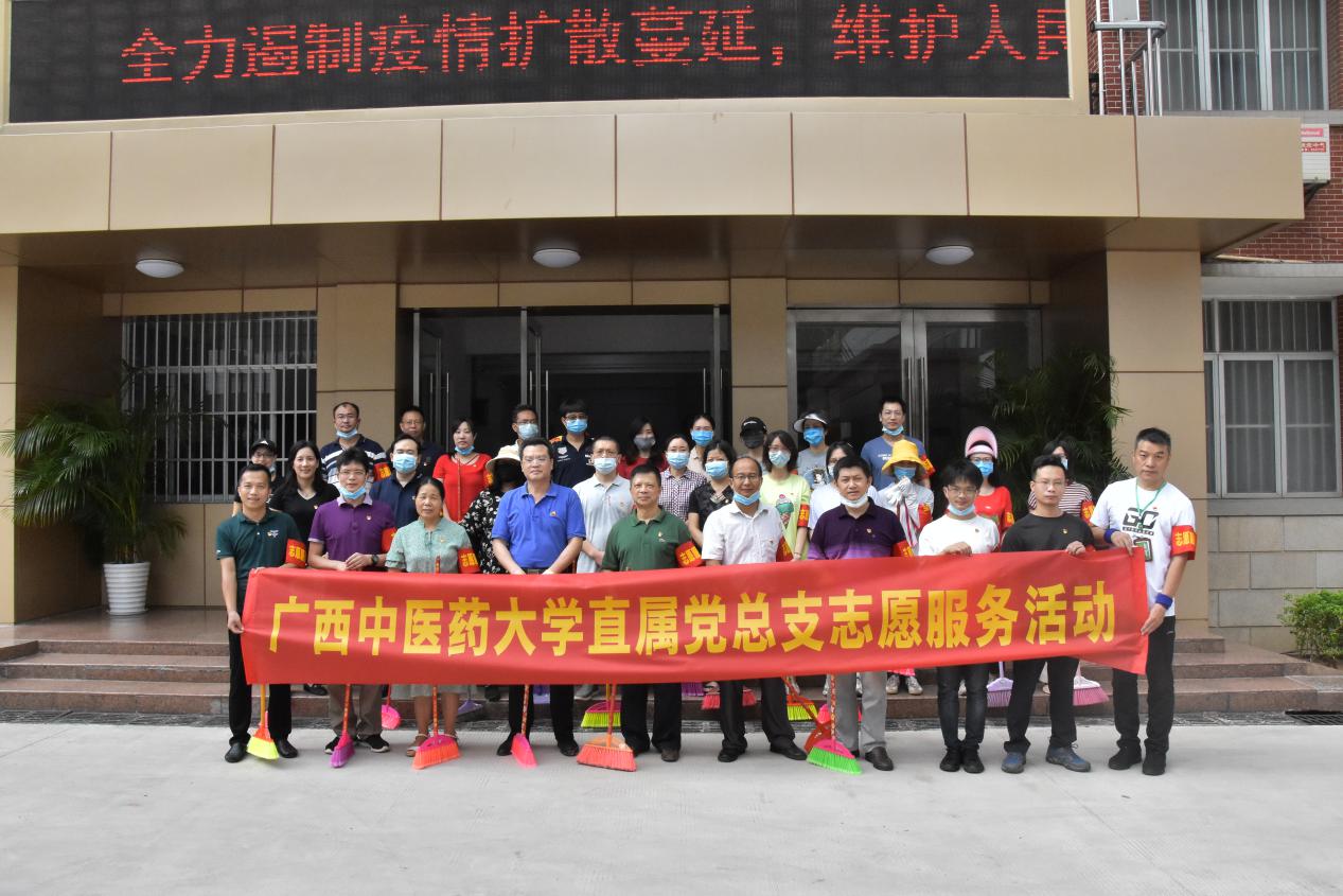 为引导广大党员岗位当先锋、社会做奉献、真情暖群众,结合南宁市创建文明城市活动,7月6日上午,直属党总支在明秀校区开展了以“争做文明先锋、为党旗添光彩”为主题的清洁校园志愿服务活动,直属党总支所辖各部门全体教职工及学生党员参加了本次活动。