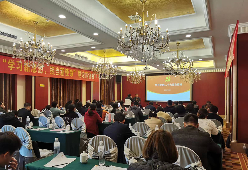为了深入学习贯彻党的二十大精神,以坚持党的全面领导为统领,加强党的政策宣传,确保党的领导全覆盖,3月30日,成人教育学院党支部结合召开beat365正版唯一入口必一成人教育教学点工作会议,组织全区各教学点工作人员和功能型党小组成员开展“学习新思想,担当新使命”理论宣讲和现场教学活动,进一步加强党支部的交流学习,提升成教院党支部功能型党小组党建工作水平。成教院全体党员以及各教学点功能型党小组成员60余人参加了活动。