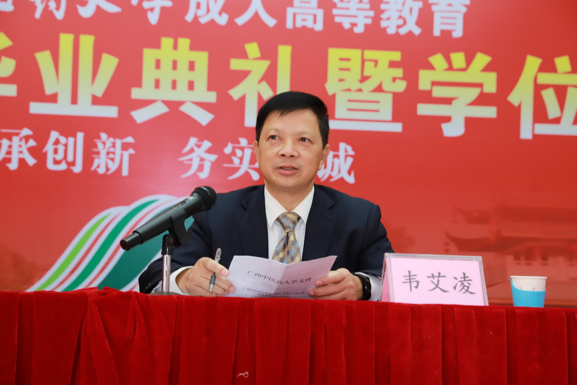 1月12日上午,学校成人高等教育2019届毕业典礼暨学位授予仪式在明秀校区隆重举行。学校副校长戴铭出席典礼并致辞。成人教育学院领导韦艾凌、覃振林、黄瑞诚,全体班主任、2019届优秀毕业生代表及教学点代表等加了典礼。典礼由黄瑞诚主持。