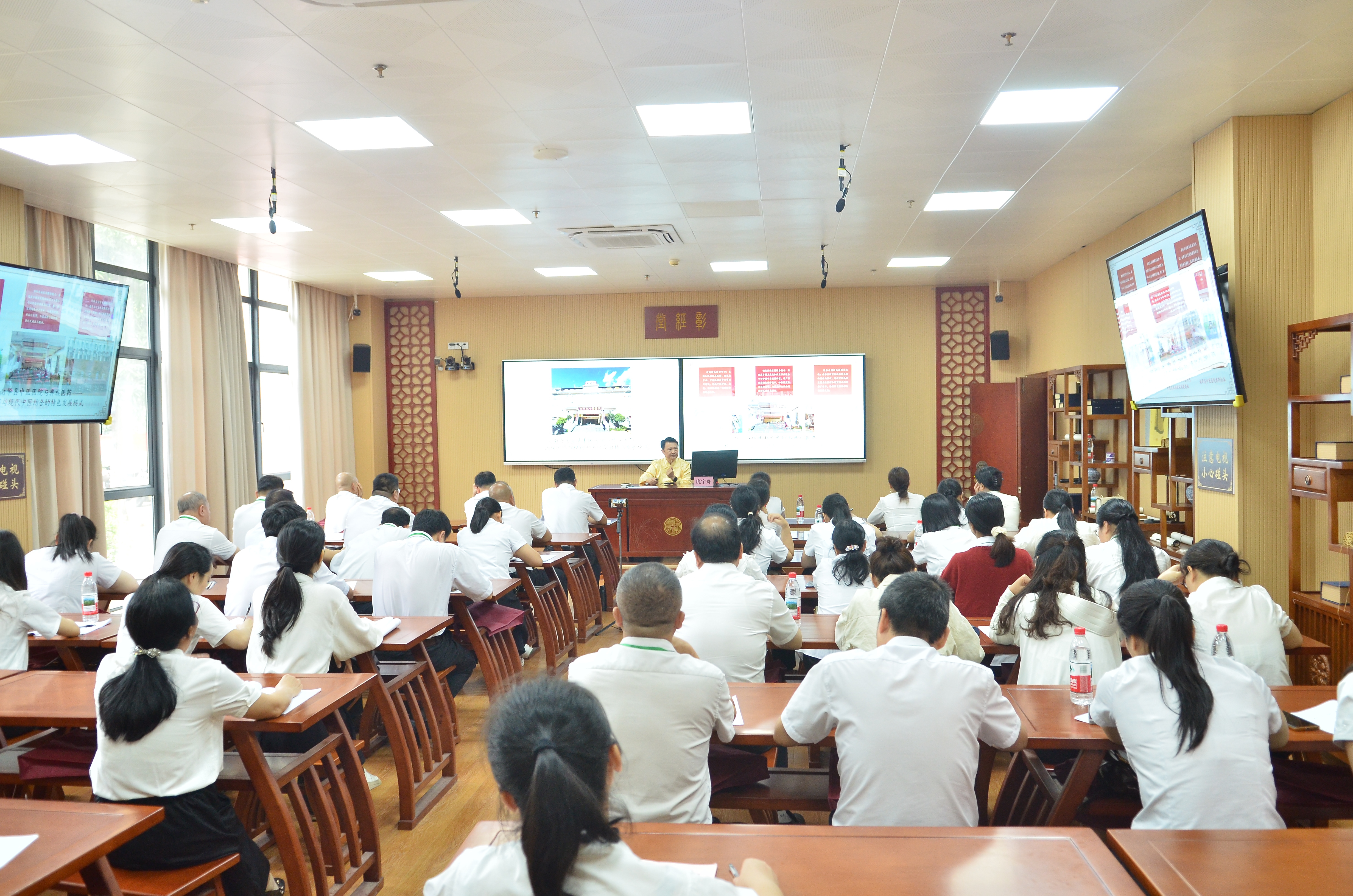 在增强中医药自信及传承中医药文化方面,唐振宇和庞宇舟结合中医临床实践经验分别为学员讲授了《学好中医经典,做自信中医人》《筑牢岐黄之基,传承济世之魂》主题课程,强调学好中医经典在临床诊断和治疗中的重要作用,并指出作为中医院中层干部,在新时代背景下应勇于肩负中医药传承与发展的文化担当使命,以中医药文化自信为本,努力推动中医药守正创新及医院管理创新发展。