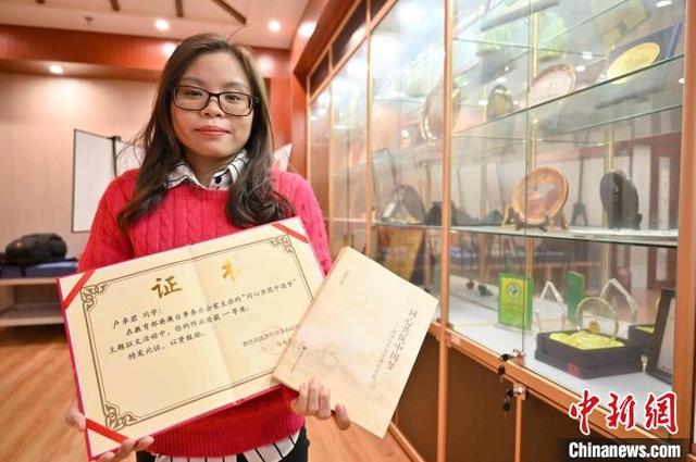 卢卓君展示获奖证书。 俞靖 摄