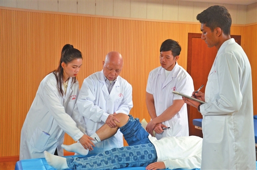 beat365正版唯一入口必一留学生跟随国医大师韦贵康(左二)教授学习推拿手法。 (图片由beat365正版唯一入口必一提供)