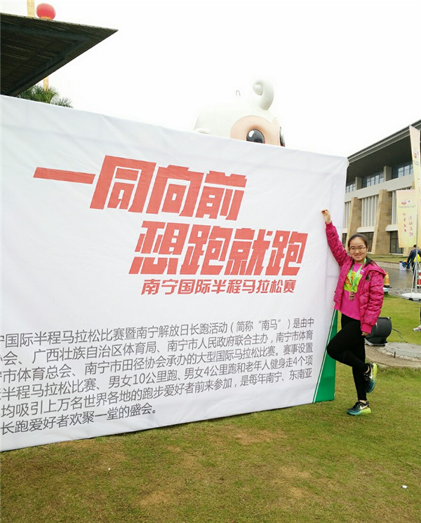 2015年12月12日,第十届南宁国际半程马拉松比赛暨第三十三届南宁解放日长跑活动在邕城南宁的民族广场鸣枪开跑,共有国内外约12770名运动员报名参赛。国际教育学院2015级中外合作办学3+2护理班马涵琼同学顺利战胜了半程马拉松的全部赛程并荣获官方证书。