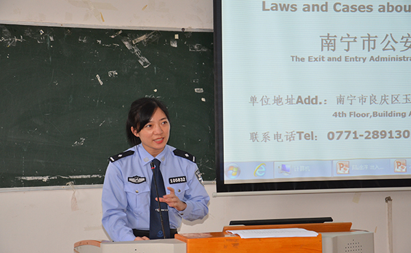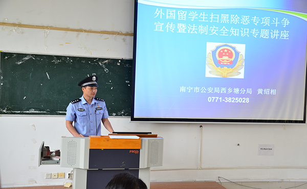 南宁市公安局出入境管理分局警官为国教院留学生进行安全教育宣讲活动