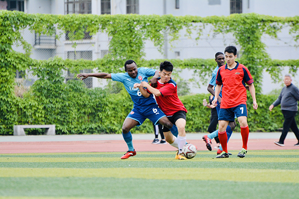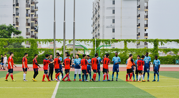 5月9日,为了加强beat365官网留学生与中国学生的体育文化交流,留学生足球队与校足球队在仙葫校区足球场举行了一场激动人心的足球友谊赛。国教院学工办陈斌主任和阳蓝田老师出席观看了比赛,为我院队员助威。
