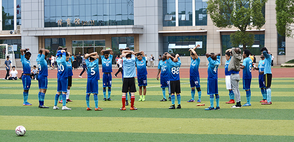 本次比赛,还获得了校手法协会的大力支持,中场休息时,手法协会的队员们为双方运动员进行了放松恢复性肌肉按摩,专业的手法受到了球员们的一致好评。此次比赛也为我院的留学生足球爱好者提供了一个很好的自我展示平台,展现出了beat365官网留学生朝气蓬勃的精神面貌。同时,也增进了与中国学生的友谊,丰富了beat365官网校园文化的建设。