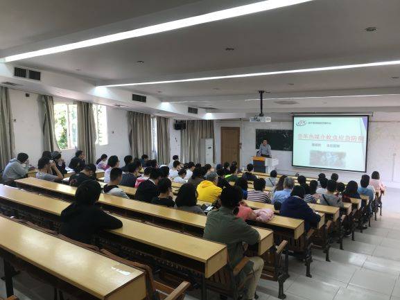 下午三时,南宁市卫生疾病控制中心的黎祖秋医生从登革热的来源、发展历史、扩散途径以及防治措施等几个方面入手,详细地为大家普及了登革热的相关常识,并汇报了近期我市登革热病例情况以及市疾控中心已采取的防治措施,在场百余名来自传统中医班的香港学生认真听取讲座,并在结束时致以热烈的掌声。当晚七时,Lauraine Neal副教授为来自印度、巴基斯坦、非洲的临床医学国际班学生带来一趟生动的医学防治课程。Neal副教授用诙谐幽默的英语、简洁明了的PPT介绍了登革热的成因、传播途径和防治措施,从身边已发生的登革热病例入手,了解了各种实用的登革热防治措施,讲座在学生们的掌声中圆满结束。