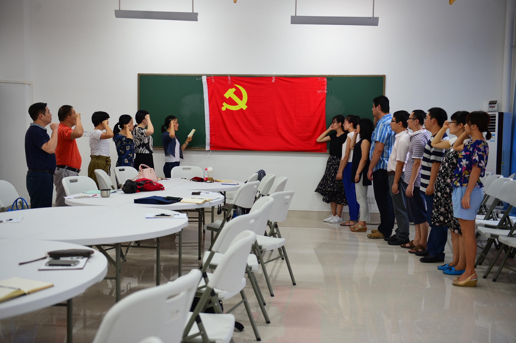 全体党员凝聚党旗下读党章,重温了入党誓词,同志们郑重举起右手,庄严宣誓,在感受到党员责任、使命、荣耀的同时,时刻以党员标准严格要求自己,发扬优良传统,坚定理想信念,履行好党和人民赋予的职责,践行好对党的庄严承诺。