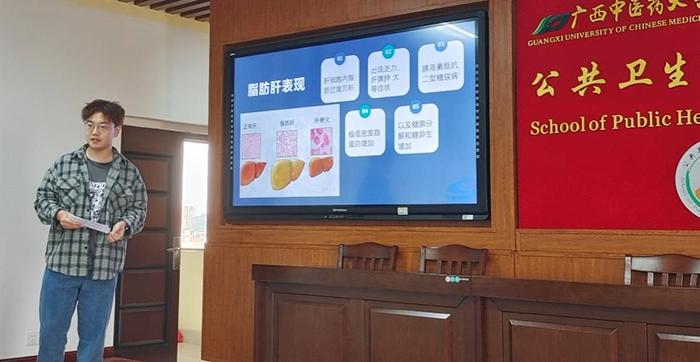 本次报告会共2名研究生汇报,由2021级中西医结合基础专业侯文宣主持,第一位汇报人是2022级中西医结合基础专业王昭荃,她分享了《分子生物学网络助力艾滋病精准防控》的综述汇报。第二位汇报人是2022级中药学专业张杰,分享了一篇名为《关于脂肪肝》的演讲汇报。历经一个小时的学术报告会顺利结束,每位汇报人分享过后,蓝光华主任医师通过远程视频指导点评,指出了两位研究生汇报的长处与不足,希望各位研究生再接再厉;会议现场韦俞伽老师以及20级、21级研究生的都表达了自己对于如何提高科研的看法及建议,做汇报的研究生表示受益匪浅。
