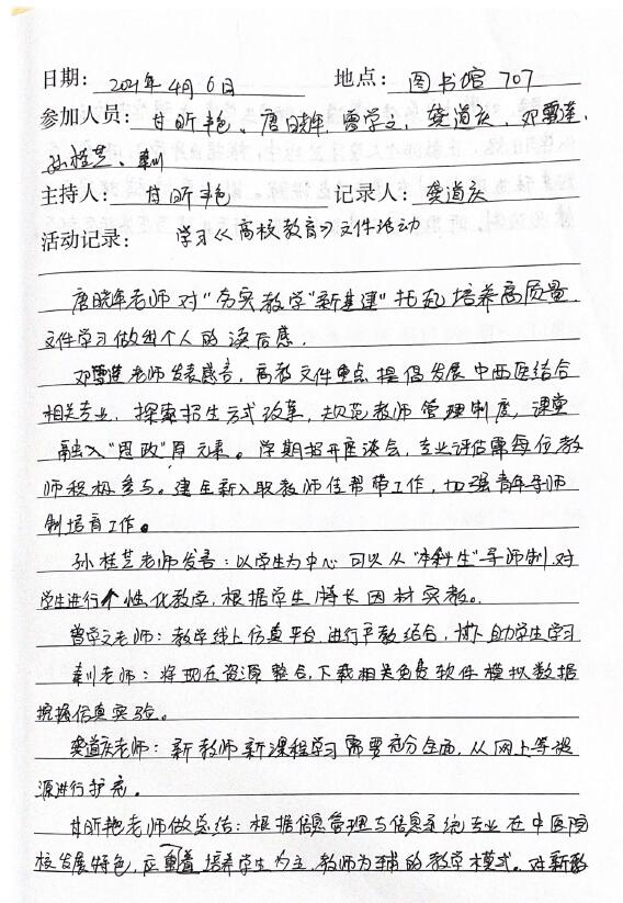 教研室集体学习高校教育相关文件