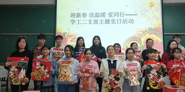 会议议程第三项,开展“迎新春、送温暖、爱同行”主题党日活动。通过抽奖的方式,鲁蕴律、庞邦君送出20余份春联和福字,营造了欢乐祥和的节日氛围、弘扬向上向善的道德风尚,充分调动党员积极性,不仅把吉祥祝福送到了千家万户,同时让支部党员感受到中华传统文化,感受到过年的味道。