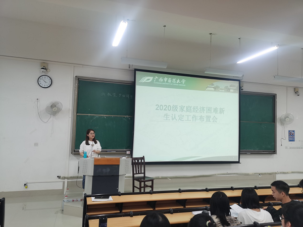 会上,团委书记鲁蕴律为同学们介绍了最新资助政策及家庭经济困难认定要求、流程,详细讲解了《beat365正版唯一入口必一家庭经济困难学生认定申请表》填写与证明材料开具的要求,并对2020级家庭经济困难新生认定工作做了详细部署。