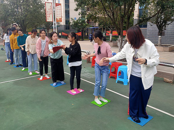本次活动主要面向我院2021届全体毕业生。本次素质拓展活动包括有仙人之路、穿越呼啦圈、铺“石”过“河’、杯水传情以及背对背拥抱和听歌识曲等六个趣味项目,由2021届毕业生自由组队参加。在活动过程中,各参赛小组队员各展所长,团结合作,秉承不放弃,不认输的原则,坚持完成了比赛。我院学生办公室主任宋南及团委书记鲁蕴律到场与学生一起进行游戏。此后,我院学生工作办公室主任宋南、我院团委书记鲁蕴律与全体参赛成员及团委学生会全体成员合影留念,我院2021届毕业生综合素质拓展活动成功举办并圆满结束。