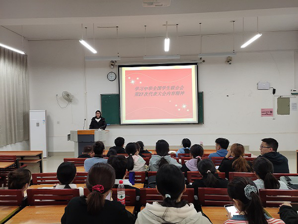 我院学生会执行主席廖泳奕主持学习中华全国学生联合会第二十七次代表大会精神