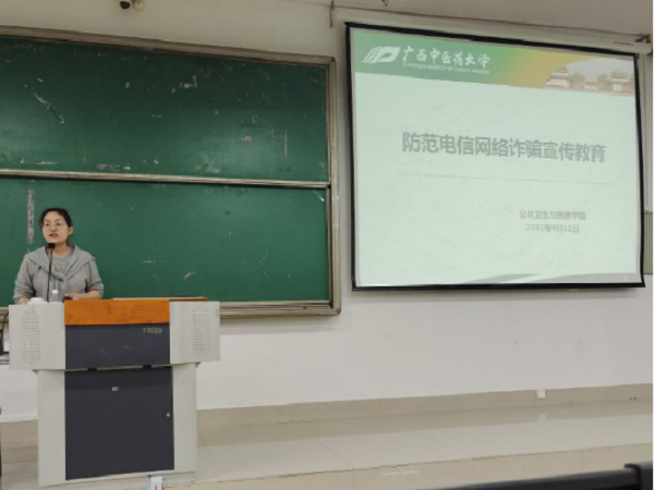 4月11日18:00,公共卫生与管理学院在仙葫校区教学楼1-201召开了防范电信网络诈骗宣传教育暨党史主题团课,本次会议由辅导员唐梧茜主讲,全体2020级在校生参加了本次会议。