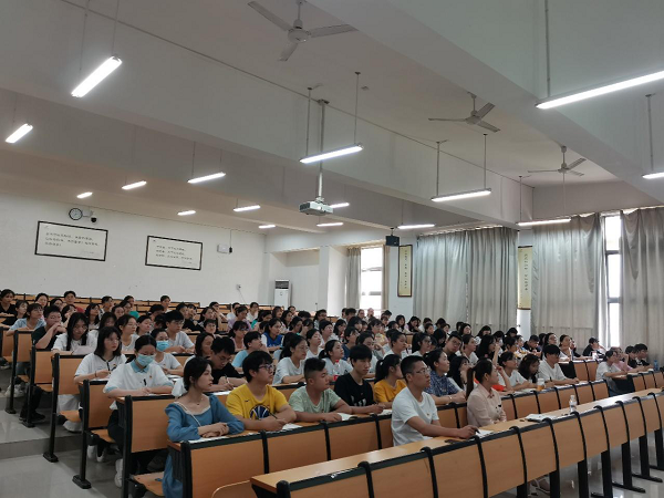 5月11日下午2:30分,公共卫生与管理学院院长董柏青在仙葫校区教学楼1-307为学院学生第一、二党支部讲授党史教育专题党课。我院学生第一党支部书记宋南、第二党支部副书记唐梧茜及全院学生党员和入党积极分子近200人参加本次学习。