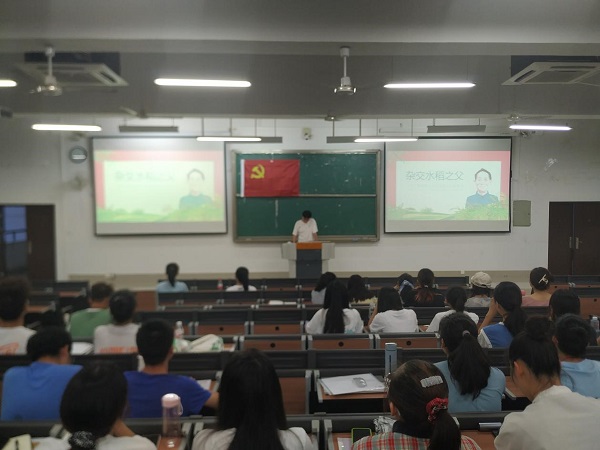 吴锡通过视频资料及讲解,从袁隆平的生平事迹回顾其一生,袁隆平的唯实精神,团结协作,勇攀高峰的科学精神以及脚踏实地的追梦精神都为我们所动容。习近平高度肯定了他为我国粮食安全、农业科技创新、世界粮食发展作出的重大贡献,并要求广大党员、干部、科技工作者向袁隆平同志学习。袁隆平的一生,“不在家,就在试验田;不在试验田,就在去试验田的路上”。一次次重大技术创新的背后,是他永不知足的脚步,是精益求精的追求,亦是科学精神的生动注脚。在没有国外经验借鉴的时代,他用他的智慧和坚毅创造了世界奇迹!
