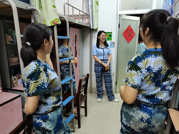 7月21日-7月22日晚训结束后,唐梧茜逐一走访了学生宿舍,深入了解同学们的思想动态、身体状况及相关诉求,提示同学们注意防范中暑及感冒,分享了同学们各连队训练的“酸甜苦辣”,为同学们“加油打气”,希望同学们在军训中,战胜天气的酷热,发扬艰苦奋斗精神,磨炼意志、强健体魄,提升集体意识和纪律意识,在历练中成长。