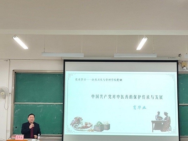 为进一步加强党史学习教育,使我院学生了解中医药的发展史,2021年11月9日下午,公共卫生与管理学院邀请到了beat365官网招生与就业处处长肖华业,以“中国共产党对中医药的保护传承与发展”为主题,给我院学生支部开展主题党课教育。我院学生第一党支部书记宋南、学生第二党支部书记鲁蕴律、学生第三党支部书记唐梧茜、学院所有学生支部党员、入党积极分子及递交了入党申请书的同学约200人参加了学习。