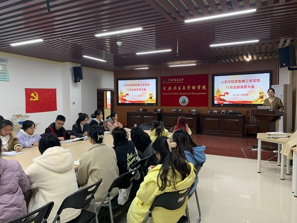 12月26日下午16:00,公共卫生与管理学院学生第三党支部在自诚楼A801会议室顺利召开12月支部党员大会,讨论支部5位预备党员转正问题。大会由支部书记唐梧茜主持,支部全体党员和入党积极分子参加大会。