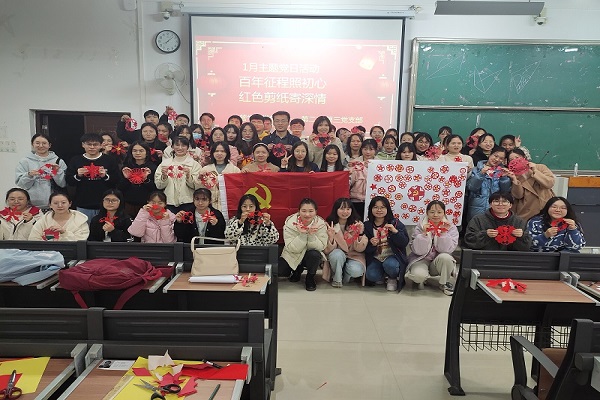 为了牢记建党一百周年的艰苦奋斗和辉煌成就,同时结合新年气氛,2022年1月3日晚,公共卫生于管理学院学生第一、第二、第三党支部组织全体党员于教学楼1-201开展主题为“百年征程照初心,红色剪纸寄深情”的主题党日活动,以剪纸寄予对伟大中国共产党的一片深情。