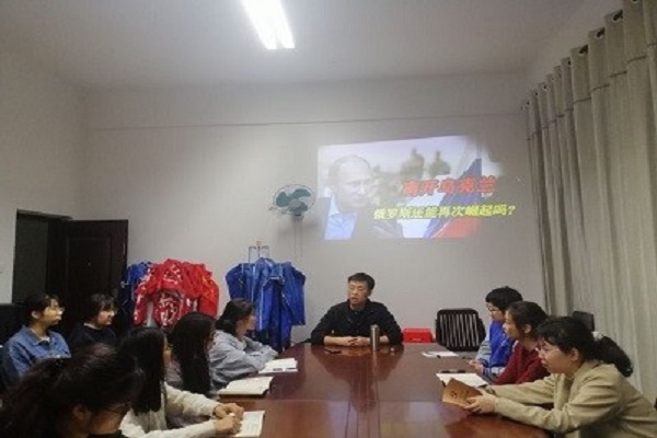 课上,宋南以《如果俄罗斯输了,对中国意味着什么?》为主题,结合视频讲解,让同志们更好地理解俄乌战争对中国和世界的影响。其中,重点从俄罗斯、美国、乌克兰、中国四国讲述了乌俄局势,揭露了美国等西方国家围堵我国的险恶用心,同时也让每一位大学生党员清晰认识到自己的责任和使命,同学们纷纷表示,一定毫不迟疑的信任党,永远跟党走,任何时候都为党和国家立场发声。