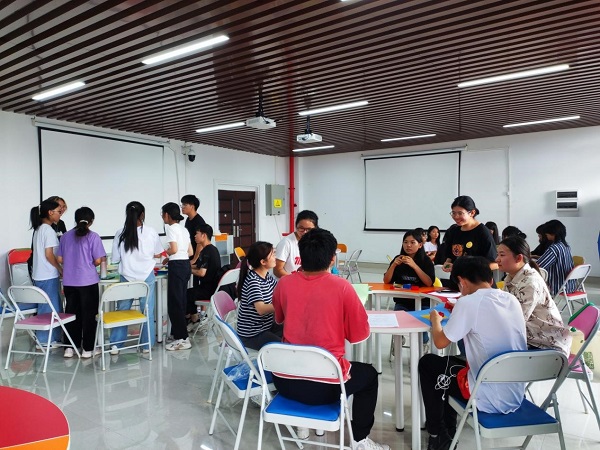 活动中同学们分成4组,“破冰”环节,梁宝桐要求各组结合全国甲卷高考作文题制作beat365官网招生宣传海报,同学们在制作过程中畅所欲言、集思广益、分工明确,积极展示海报设计思路,有效锻炼了小组间的团队协作能力和沟通组织能力。接着,梁宝桐带领各小组进入“寻找真我角色”与“我的学习探索”练习,通过练习告诉同学们应对压力最好的方式是社交。随后进行了“哑人筑塔”游戏,同学们从游戏中明白了语言表达与相互理解的重要性。最后,梁宝桐殷切期望我院学生今后能积极参加社交活动,释放压力。