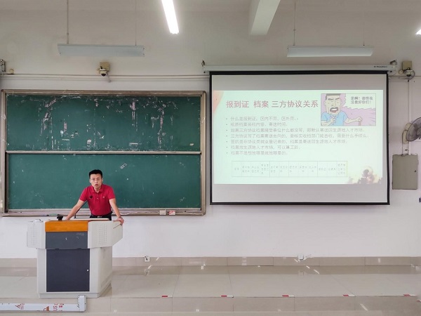 会上,宋南首先结合具体事例,就档案转递、三方协议签订、党团关系转接、毕业典礼等事务做了详细讲解。其次,宋南要求同学们要怀着感恩的心文明离校,做好宿舍卫生清洁,展现当代大学生良好素质。并对生源地贷款同学做了诚信教育,教育同学们要感恩党和国家,做到按时还款,积极工作,服务社会,报效党和国家。随后,宋南就参军入伍、边远地区代偿等资助政策做了宣讲。最后,宋南殷切期望我院学生在今后无论面对何种困难,都要保证身心的健康,并以积极乐观、奋发有为、拼搏上进的态度面对未来的职场生活。