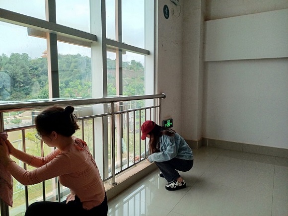疫情防控期间,打扫教学楼楼梯卫生有助于保持环境的干净整洁,有效抑制细菌污染。19预防党小组积极参加,分工明确,自行准备抹布、扫把等劳动工具,将扶手、窗户、楼梯等仔细的打扫干净,在同学中倡导文明理念,主动引导同学们关注教学楼卫生,共同维护整洁有序的学习环境。