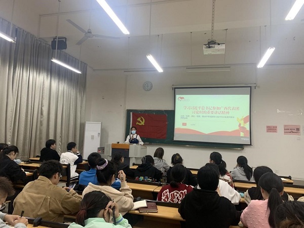 公共卫生与管理学院党委学生第三党支部于11月25日下午 17:30在教学楼1-112教室召开11月支部党员大会,本次大会由支部书记唐梧茜主持,学习党的二十大精神和习近平总书记参加广西代表团讨论时的重要讲话精神,支部全体党员参加本次大会。