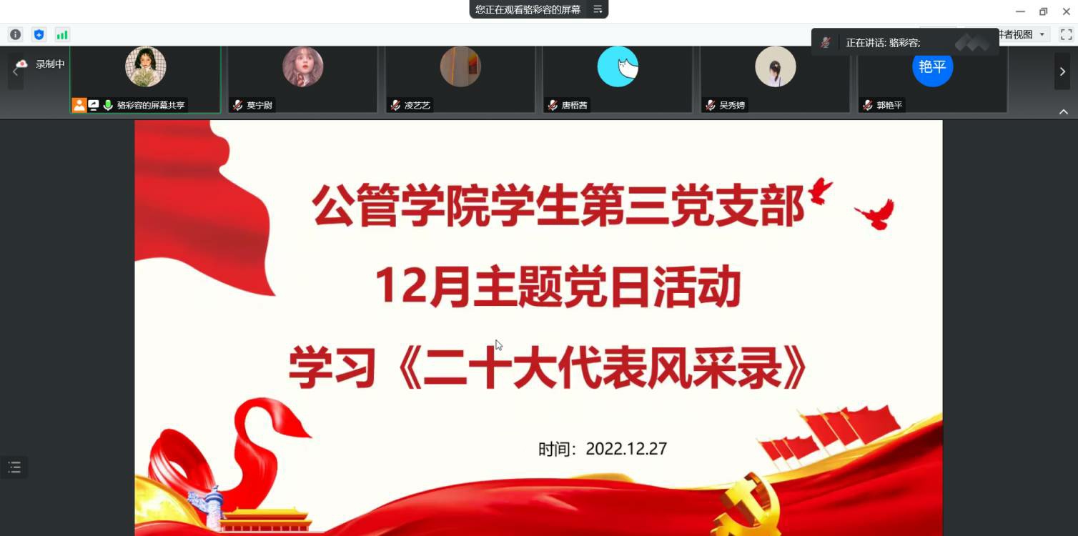 学生第三党支部12月主题党日活动——学习《党的二十大代表风采录》