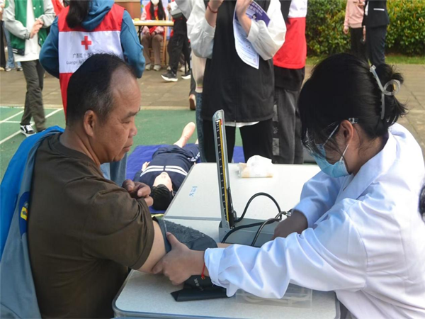 志愿活动服务队成员向社区居民宣讲了甲流的预防、高血压、糖尿病、中风预防和中风急救等健康知识,还对不科学的“健康知识”进行了辟谣,向居民普及了常见老年疾病的知识,提高了居民预防疾病的意识。此外,beat365正版唯一入口必一大学生红十字会志愿者还为社区居民量血压和开展了海姆立克急救法和模拟心肺复苏等演练操作。社区居民在志愿服务队的指导下积极参与模拟操作,学会了面对突发危险情况的急救方法。最后,本次志愿活动在我院团委学生会和beat365正版唯一入口必一大学生红十字会志愿者的合影留念中落下帷幕。
