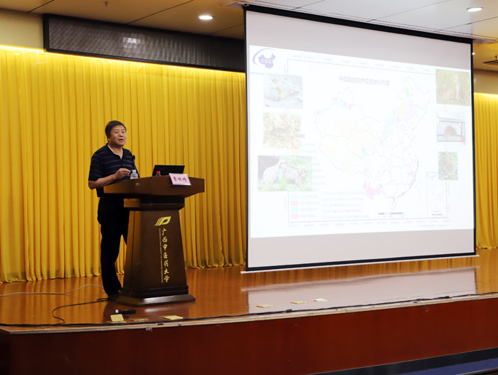 2019年5月31日下午,由科技处主办、公共卫生与管理学院和广西高发传染病中西医结合转化医学重点实验室共同承办的公共卫生“专家讲坛”系列讲座第3讲在仙葫校区图书馆第二会议室举行,此次讲座邀请的主讲专家是中国疾病预防控制中心应急实验室主任、研究员景怀琦教授,他报告的题目是《致病性耶尔森菌的生态学研究》。讲座由公共卫生与管理学院院长董柏青主持,全校师生200多人聆听了讲座。