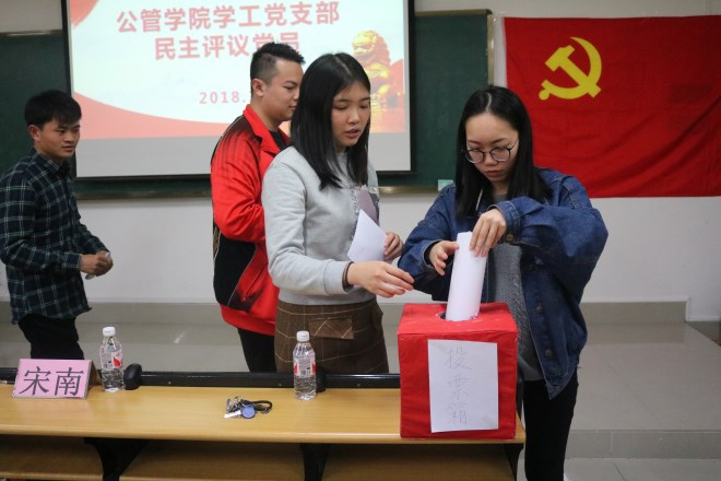 大会伊始,宋南老师以交流讨论的方式带领所有学生党员认真学习了党的十九大报告和党章。在支部书记的带领下,全体学生党员集中学习了习近平新时代中国特色社会主义思想和党章,党员们不仅深刻理解了“八个明确”主要内容和“十四个坚持”基本方略,还深入探讨了党员义务以及党的基层组织的基本任务等内容。宋南老师强调,党员要坚持把思想和行动牢牢统一到维护以习近平同志为核心的党中央权威和集中统一领导上来,统一到和党员们落实党的十九大确定的各项任务中去。紧接着,宋南老师紧紧围绕学习贯彻党的十九大精神及党员作风建设展开阐述,以政治功能强不强、“四个意识”牢不牢、“四个自信”有没有、工作作风实不实、发挥作用好不好、自我要求严不严,深入查摆具体问题。就我院学工党支部的特殊性,宋南老师要求党支部要切实做到联系思想工作实际查摆问题,严格对照党章要求,坚持组织生活制度,遵守党的纪律,真正做到为同学们服务。紧接着,鲁蕴律老师对2017年度党支部的工作进行了总结汇报,指出了今后努力和改进的方向,并组织在座党员学习习近平总书记关于纠正“四风”,加强作风建设的重要指示,要求过党员们从自身出发,认真并深入进行自我剖析,自我反省,不仅要深刻认识到自身存在的问题,还要敢于指出别人的缺点与不足。围绕会中查摆的问题以及党员群众提出的意见,鲁蕴律老师带领全体党员进行了讨论并列出了整改事项、作出了整改承诺,做到有问题就改,尽快让党员群众看到变化。会议的尾声,党员们采用无记名投票的方式,对党支部成员进行民主评议。