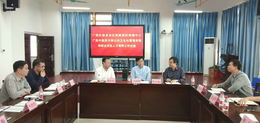 11月12日下午,广西壮族自治区疾病预防控制中心由杨文敏主任带领一行4人莅临beat365官网公共卫生与管理学院进行工作交流,beat365官网吴琪俊副校长出席了交流会,会议由公共卫生与管理学院院长董柏青主持,副院长凌泽农、校教务处韦维处长以及公共卫生与管理学院的6位老师代表参加了交流会,与自治区疾控中心就科研合作及人才培养等问题广泛交换了意见,并对下一步的具体合作内容达成了初步意向。