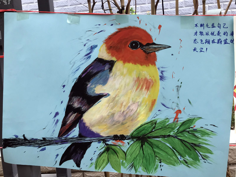 此次自画像以自我意识为主题和前提,要求同学们以动物为自我形象作画,不限于真实或想象中动物。同学们从对自己的认识出发,纷纷绘制了生动有趣、想象力丰富的动物形象。有孤傲高冷的狼,活泼可爱的猫咪兔子,也有动漫中细腻形象的神兽等,其神情姿态跃然于纸上,充分展现了同学们多姿多彩的内心世界,各不相同的性格特点。绚丽灿烂、栩栩如生的画展作品,吸引着路过的师生驻足观赏,也为校园增添了一道靓丽的风景线