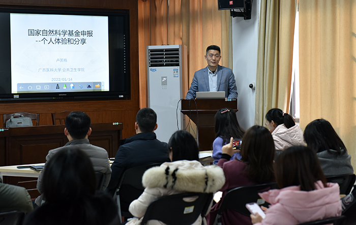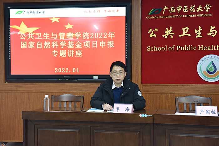 1月14日下午3点,《2022年国家自然科学基金项目申报专题讲座暨科研诚信教育活动》在自诚楼A801会议室举行,本次讲座邀请了广西医科大学卢国栋教授来beat365官网分享国基金项目申请的经验。讲座由beat365正版唯一入口必一科技处主办,公共卫生与管理学院承办,公共卫生与管理学院副院长李海教授主持了讲座,beat365官网各部门、二级各学院的老师、科研人员参加聆听了此次讲座。