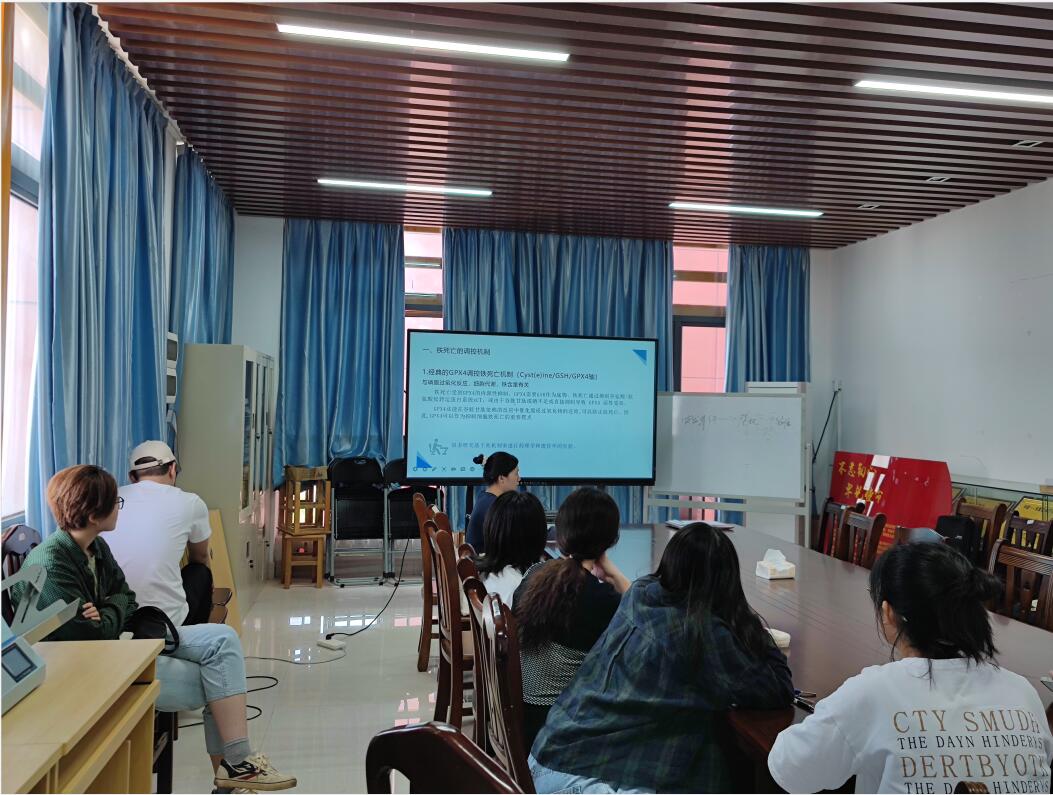 本次报告会第一个汇报的是2021级中西医结合基础黎金月黎金月,她分享了《Ferroptosis: mechanisms, biology, and role in disease》这一篇综述文献,介绍了铁死亡相关的研究进展。第二位汇报人是2021级护理赵文文,她给大家讲述了实用新型专利申请的申请过程,让大家对新型专利的申请有了一个初步的了解。学术报告会加强了我院研究生之间的互相交流,促进不同研究课题之间的思想碰撞,开拓科研视野。