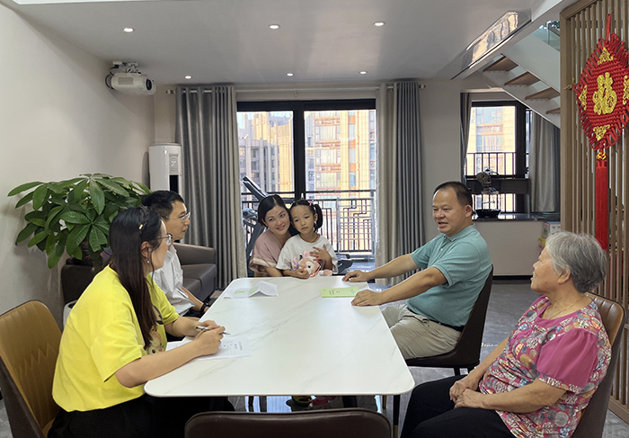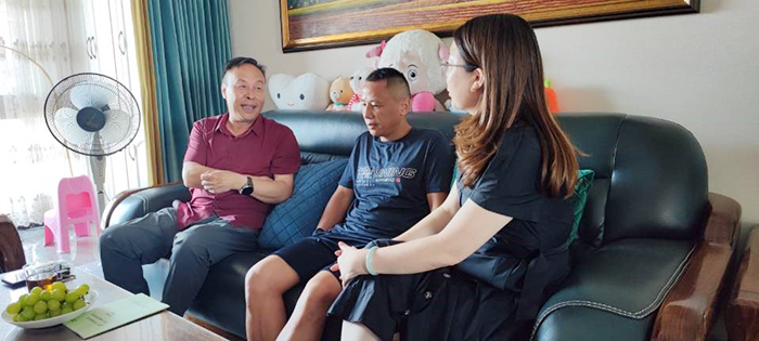 李怀泽书记与李海家庭进行了深入访谈,向其家庭成员一同介绍了学校“清廉桂中医”和学院“清廉公管”的建设方案及要求。家属表示:“不忘初心、以身作则,从生活本质出发,配合做好‘清廉’有关工作,做好李海同志的后盾”。
