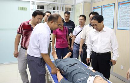 座谈会后,罗副校长带领骨伤学院部分同志来到医学教育实训中心,对即将在此举办的骨伤技能邀请赛场地进行现场检查,罗副校长对如何把实训项目有机连接、办好骨伤技能邀请赛提出了明确要求。
