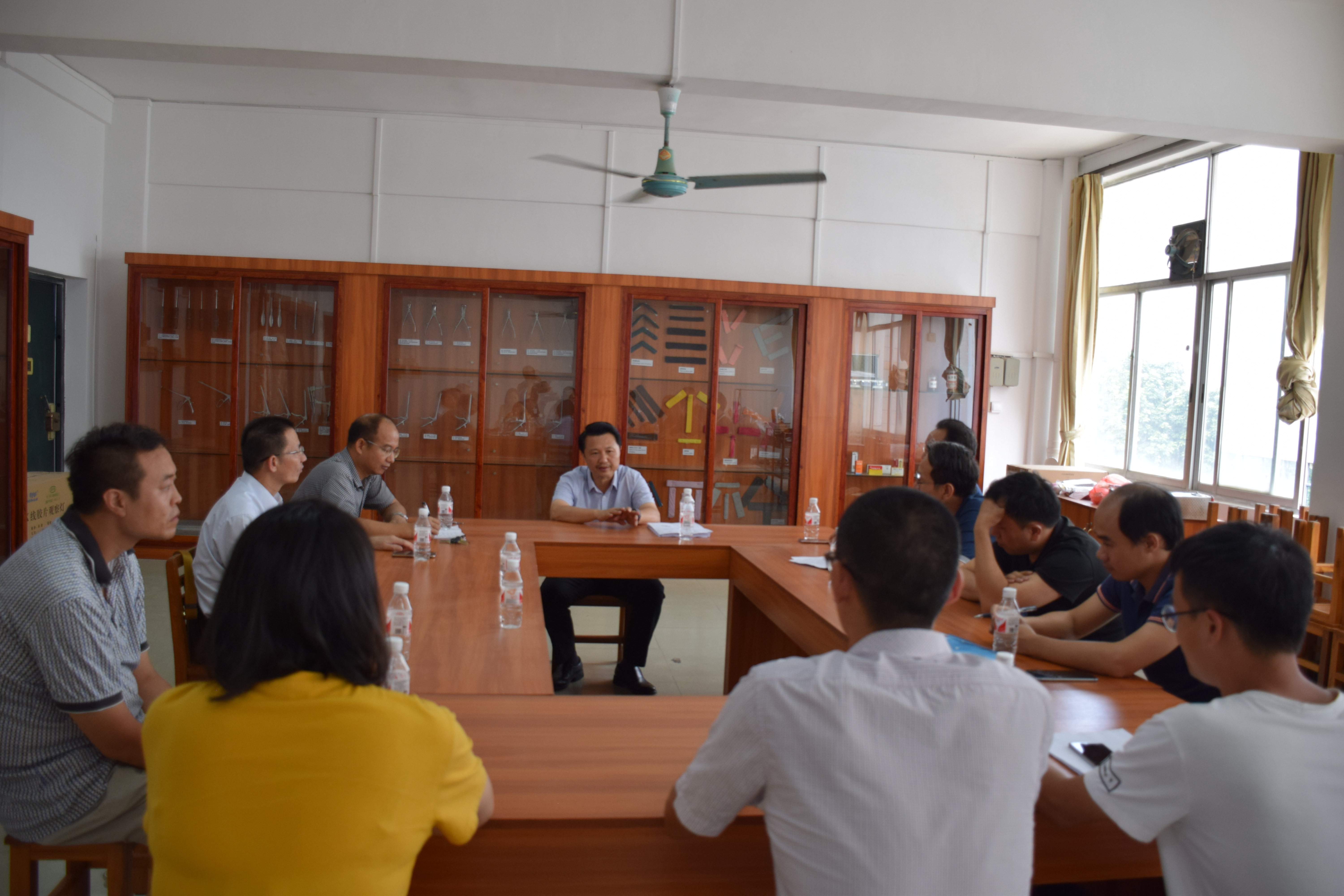 开学第一周,庞宇舟副书记来到骨伤学院来检查工作,并与骨伤学院全体教职员工、骨伤医院医教科闭永杰科长、瑞康医院骨伤科潘汉生主任以及与骨伤学院联合教学的有关教学人员进行了座谈。座谈在骨伤学院新落成的中医骨伤科临床实训室进行。
