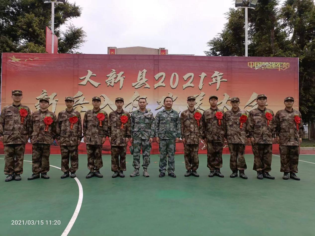 热烈祝贺我院梁宇豪同学光荣入伍 发布时间:2021-03-26 10:42:25 浏览次数: 次 【字体:小 大】 我院2020级中医骨伤科学班梁宇豪同学,男,壮族,共青团员, 学号:20203480060,广西大新县人。该生有理想有信念,积极响应国家号召,经过层层选拔、政审、体检,于2021年3月15日光荣入伍,把自己的青春与祖国的军队建设事业紧紧联系在一起,在军营绽放自己的光和热。这是骨伤学子的光荣,也是骨伤学子的榜样。 梁宇豪同学身披军装入伍(左一) 大新县领导与梁宇豪同学合影 分享到: 【打印正文】