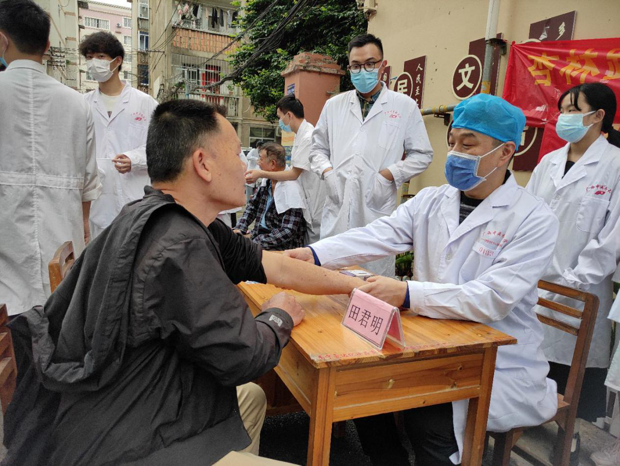 2021年3月26日,beat365正版唯一入口必一骨伤学院在华强社区举行义诊活动,骨伤学院院办主任田君明老师、院团委书记温健老师莅临指导。