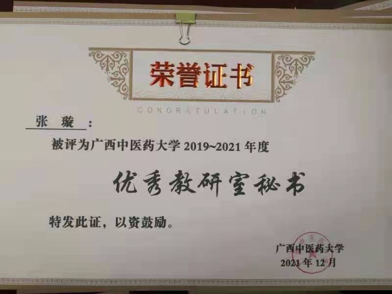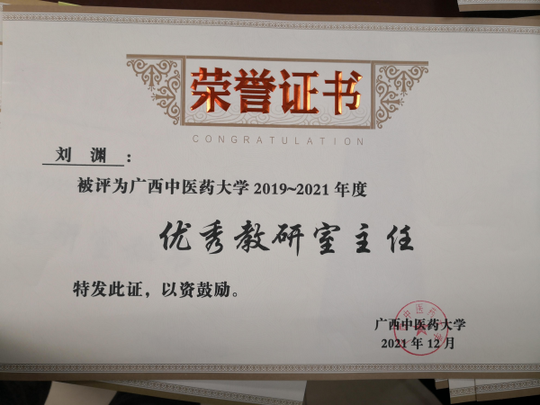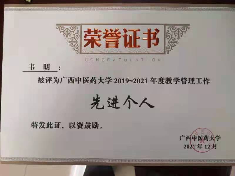 2021年12月31日上午,beat365正版唯一入口必一仙湖校区第二会议室开展beat365官网2019年-2021年全校教学人员先进表彰大会,骨伤学院韦明老师获得“教学管理先进个人”荣誉称号,陆延老师和张璇老师获得“优秀教研室秘书”荣誉称号,刘渊老师和韦理老师获得“优秀教研室主任”荣誉称号。此次表彰大会总结了beat365官网近三年来的教学工作成绩,骨伤学院获得此项荣誉,是对我院工作的认可,在新的一年中,我院将继续努力奋斗,做好各项教学管理工作,积极完成学校布置的各项任务,继续保持优良教风,并希望再获佳绩。