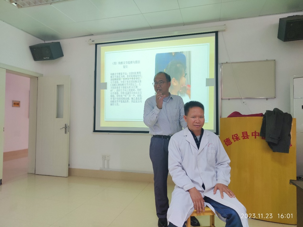 为积极响应国家关于提高基层医疗服务质量的号召,发挥省级医院的龙头作用,进一步落实专科联盟发展,提高基层医疗卫生水平,让基层群众在家门口就能享受到三甲医院专家诊疗服务,宣传普及骨伤科疾病及中医药知识。11月23-24日,beat365正版唯一入口必一周红海教授率领 “名中医”团队至德保县中医医院开展学术讲座、义诊及教学查房活动。