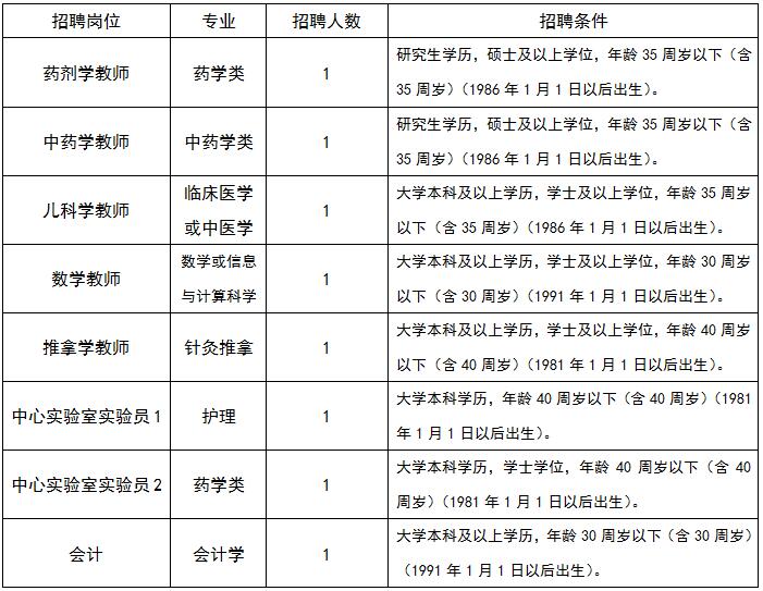 1.药剂学教师、中药学教师、儿科学教师、推拿学教师、数学教师岗位
