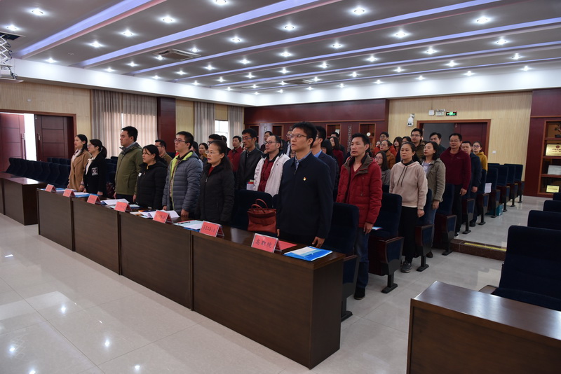 2019年12月3日下午,高职院、中医学校第九届教职工代表大会暨工会会员代表大会在北湖校区多功能报告厅举行。全体院(校)领导、正式代表、列席代表共57人参加会议。会议由周琦副院(校)长主持。