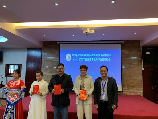 由广西民族技艺行业职业教育教学指导委会牵头举办的2020年广西民族技艺优秀作品评比展,于2020年11月12日下午进行颁奖仪式,beat365官网参展6个作品均获佳绩:最佳创新奖—壮药颈宝,二等奖—活血化瘀足浴散、彩绘壮医目诊学习卡,三等奖—醒神开窍香囊、紫草膏、口红。